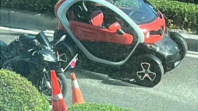 Es un Renalt Twizy con capacidad para dos personas, piloto y pasajero.