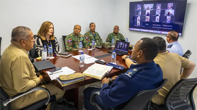 Santo Domingo.- El director general de Migración, vicealmirante Luis Rafael Lee Ballester, ARD, encabezó una reunión presencial-virtual con todos los encargados y coordinadores nacionales de interdicción migratoria, para reforzar el cumplimiento del protocolo hospitalario y las directrices en las operaciones de interdicción que realiza la institución en todo el país.
