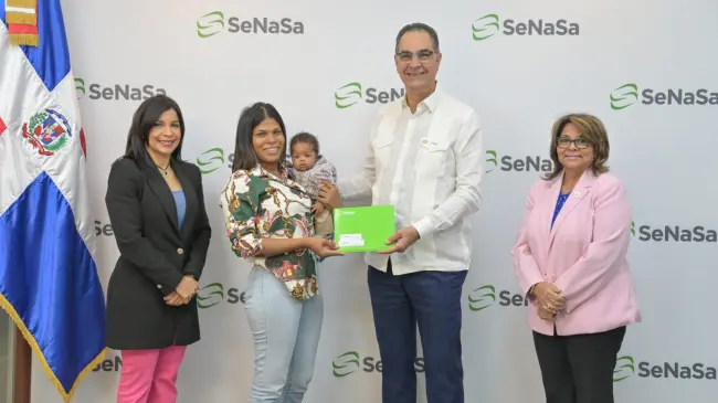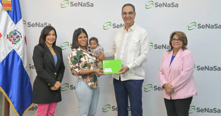 Santo Domingo.– Santo Domingo. -El director ejecutivo del Seguro Nacional de Salud (SeNaSa), Santiago Hazim, entregó los carnets a una de las madres de los primeros bebés nacidos en las principales maternidades durante las primeras horas del 2024 de enero pasado, con el objetivo de recordarles a los titulares que cuidar el núcleo familiar es una responsabilidad del titular de cada núcleo.