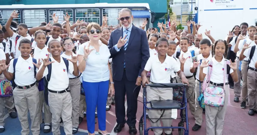 El doctor Guzmán fue recibido por la presidenta de la Asociación Pro-Educación del Sordo, Mirna Burgal de Jana; la directora ejecutiva de la organización, Salma Suero; y la directora de la escuela, Jeannete Francisco.