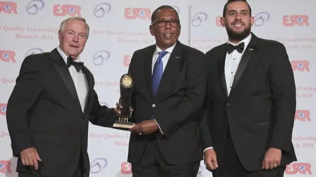 Bruselas, Belgica.-El director general de Comedores Económicos del Estado, recibió la estatuilla y el certificado que acredita a la institución como ganadora del premio Best Quality Leadership Awards 2024, otorgado por la European Society for Quality Research (ESQR) (Sociedad Europea para la investigación de la Calidad), en un majestuoso evento celebrado en el hotel Le Plaza en Bruselas, en el que estuvieron presentes representantes empresariales, diplomáticos, funcionarios públicos, profesores universitarios y expertos en calidad de todo el mundo.