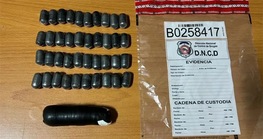 "La mujer de 22 años llevaba 40 bolsitas de la presunta droga adheridas en los brasieres, 97 envoltorios en el estómago, así como una porción en la vagina, para un total de 138 bolsitas, con un peso aproximado de un kilo y 341 gramos".