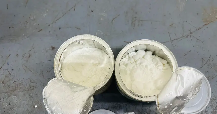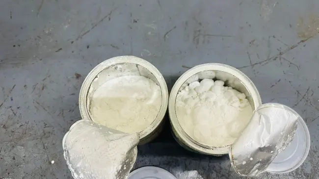 En presencia de un fiscal, se inició una primera inspección, descubriendo en el interior de una caja, dos latas que simulaban ser de leche, rellenas de cocaína