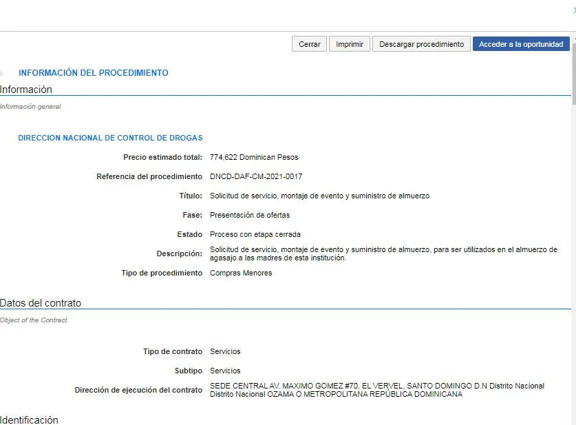 Pero no se queda ahí, el Control de Drogas licitó 774,622 pesos, solo en el montaje de evento y suministro de almuerzo para la celebración dentro de la entidad.