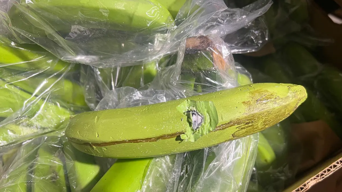 Por instrucciones del fiscal se abrió el contenedor, en cuyo interior se ocuparon, un total de 16 cajas con 303 unidades de bananos verdes, hechos en cerámica, rellenos de la sustancia, con un peso total de 32. 64 kilogramos de cocaína, según determinó el Instituto Nacional de Ciencias Forenses (INACIF).