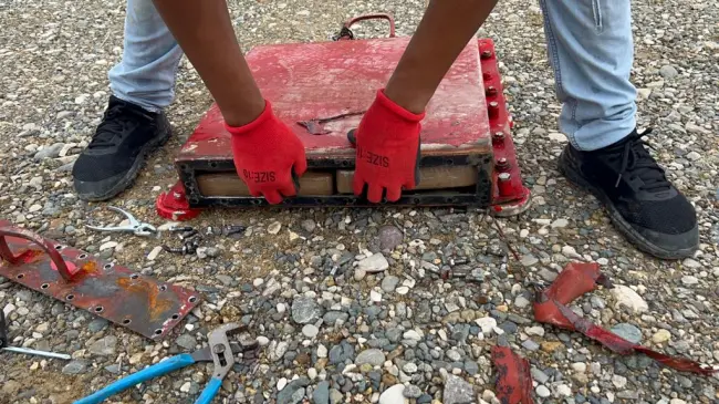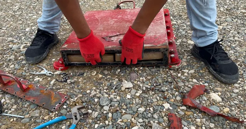 Horas después un equipo de buzos de la Armada, tras una intensa inspección, localizó en el casco del buque una caja de metal pegada con imanes especiales, en cuyo interior se hallaron los 13 paquetes de la sustancia.
