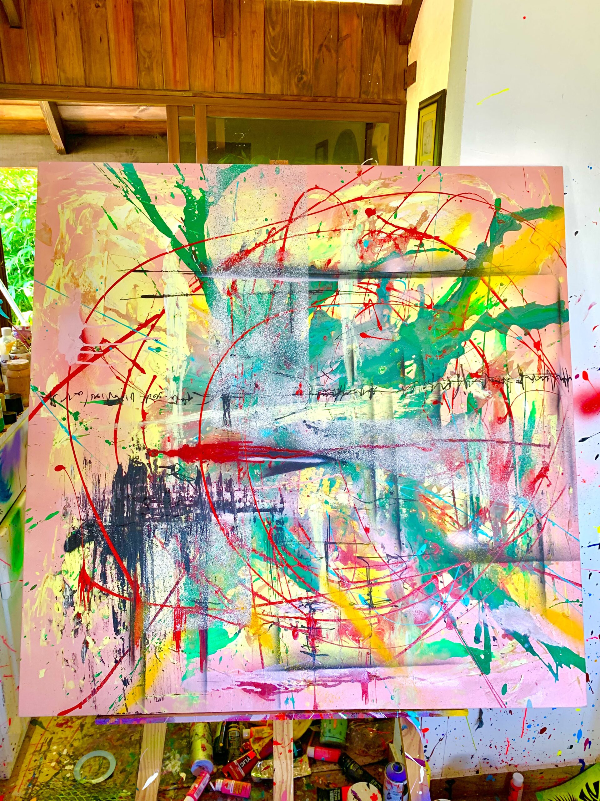 La obra abstracta, de 40 x 40 pulgadas, fue subastada a través de la plataforma internacional LiveAuctioneers por Willow Fine Art Gallery. La pieza se encontraba entre obras de grandes maestros como Frida Kahlo, Picasso, Amelia Peláez y Keith Haring, algunas de las cuales se vendieron por hasta 85 mil dólares. En el momento de la subasta, la artista se encontraba de vacaciones en Francia.