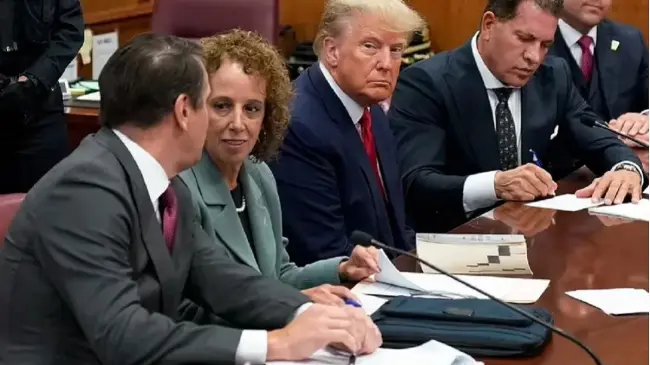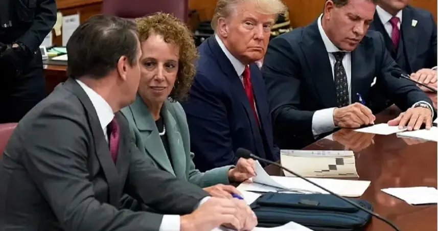 Vestido con un traje azul claro y corbata roja, Trump estuvo precedido de su equipo de abogados, con Joe Tacopina a la cabeza, y seguido por dos agentes de policía. Inmediatamente después conoció los cargos de la imputación, que lleva como dosier el número 71543-23, según The New York Times, que añade que no quiso responder a las preguntas de un periodista presente en la sala.