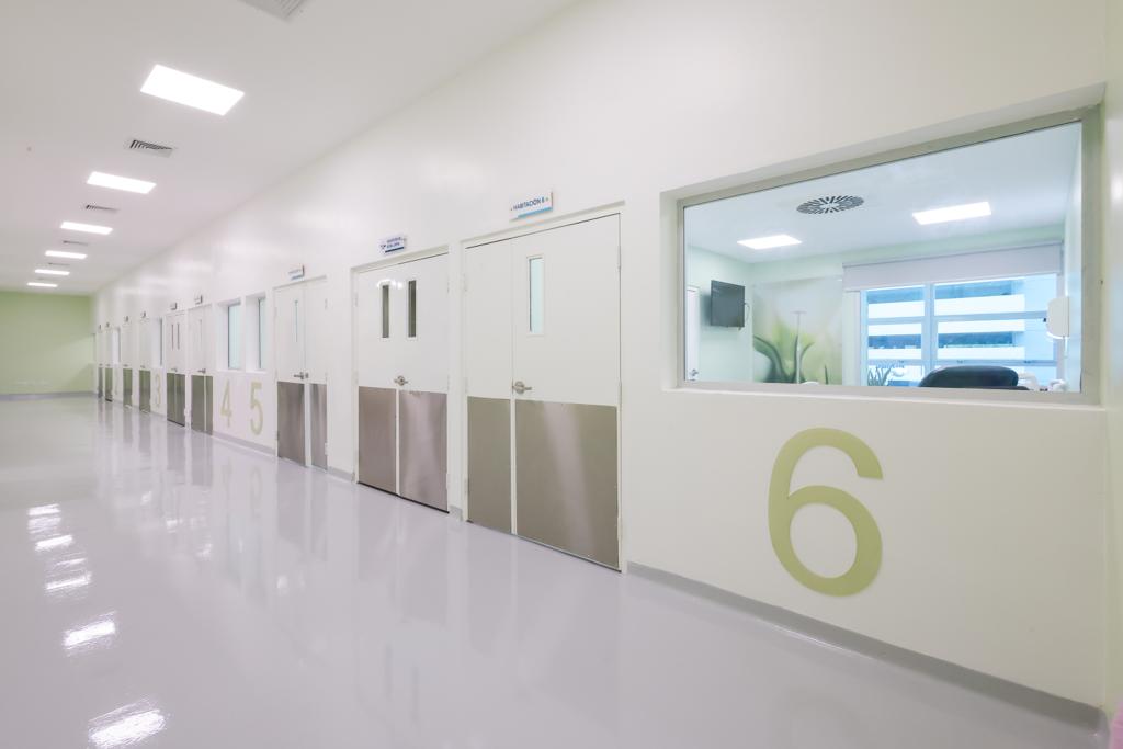 La unidad también dispone de un espacio para los familiares, separado por cristal, permitiendo el apoyo emocional sin comprometer el aislamiento necesario.