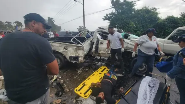San Francisco de Macorís.– San Francisco de Macorís.- Al menos dos personas perdieron la vida y una resultó herida, en medio de un accidente de tránsito ocurrido al mediodía de este lunes, en el tramo carretero San Francisco-Nagua, próximo al cruce de Las Taranas, en Villa Riva.