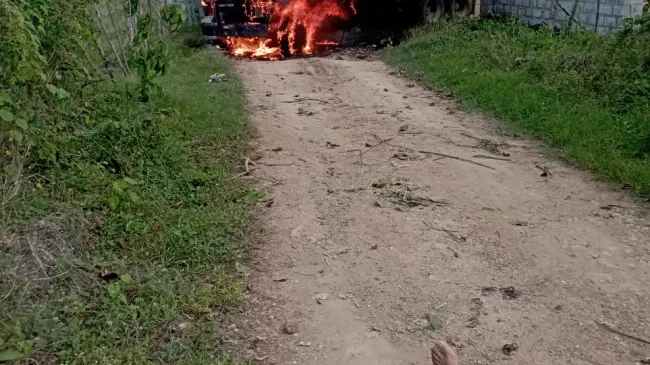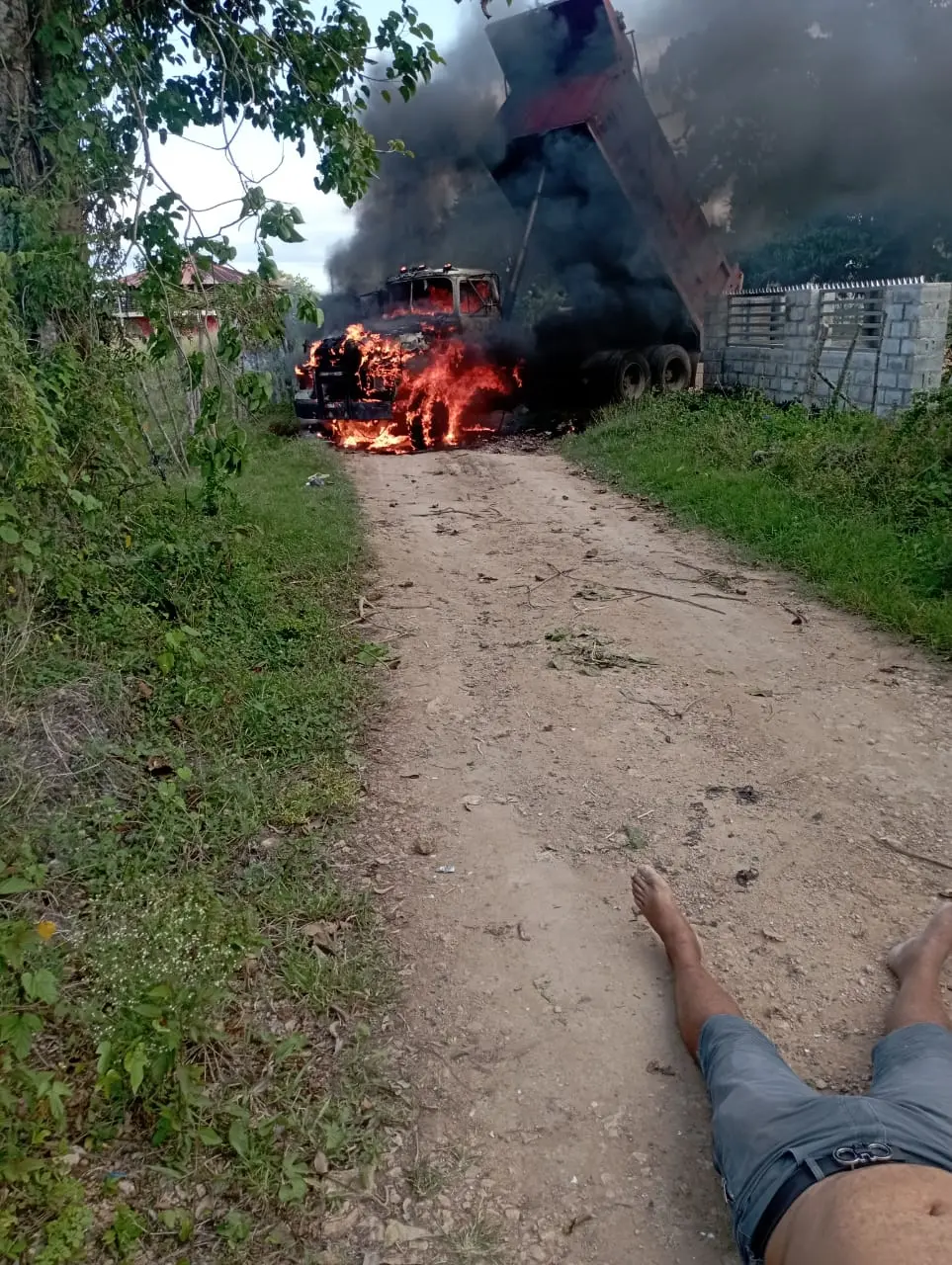 Según informaciones, los hombres se encontraban a bordo del camión que presuntamente hizo contacto con un cable de alta tensión, lo que provocó el incendio del vehículo.