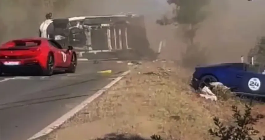 Sin embargo, el plácido viaje terminó en tragedia cuando dos de esos autos de lujo chocaron entre sí y terminaron impactando contra una casa rodante.