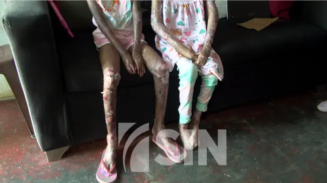 El dolor en la piel de estas niñas de 11 y 13 es indescriptible por las ampollas que le nacen en la piel.
