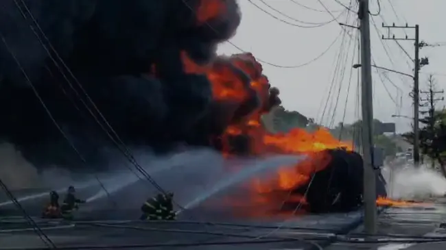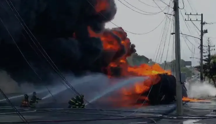 Dos personas ingresadas por incendio de camión en la autopista Duarte