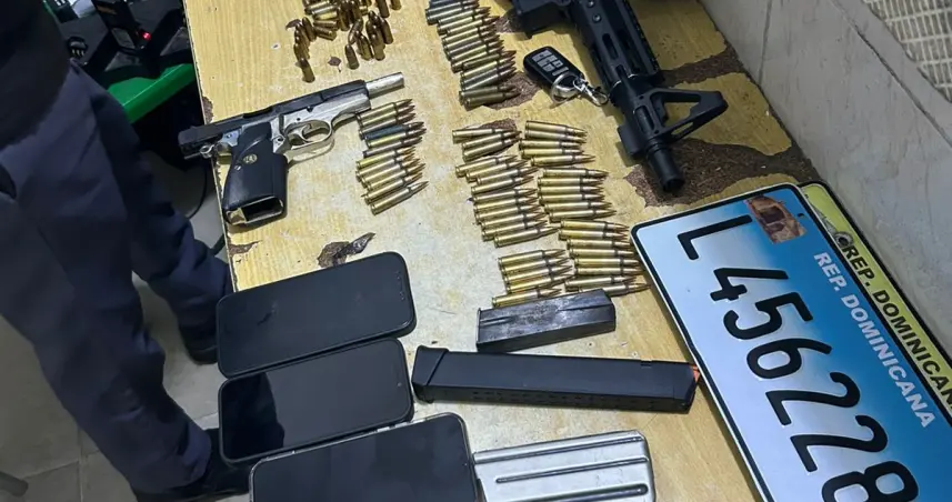 Minutos después, los señalados fueron ubicados y detenidos a bordo de un vehículo, encontrándoseles en posesión de armas de fuego, chalecos antibalas, pasamontañas y otros objetos utilizados para simular una intervención policial.