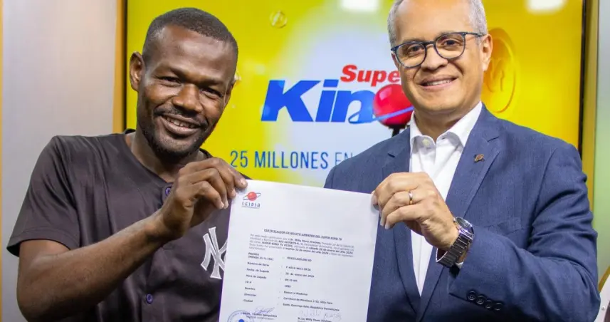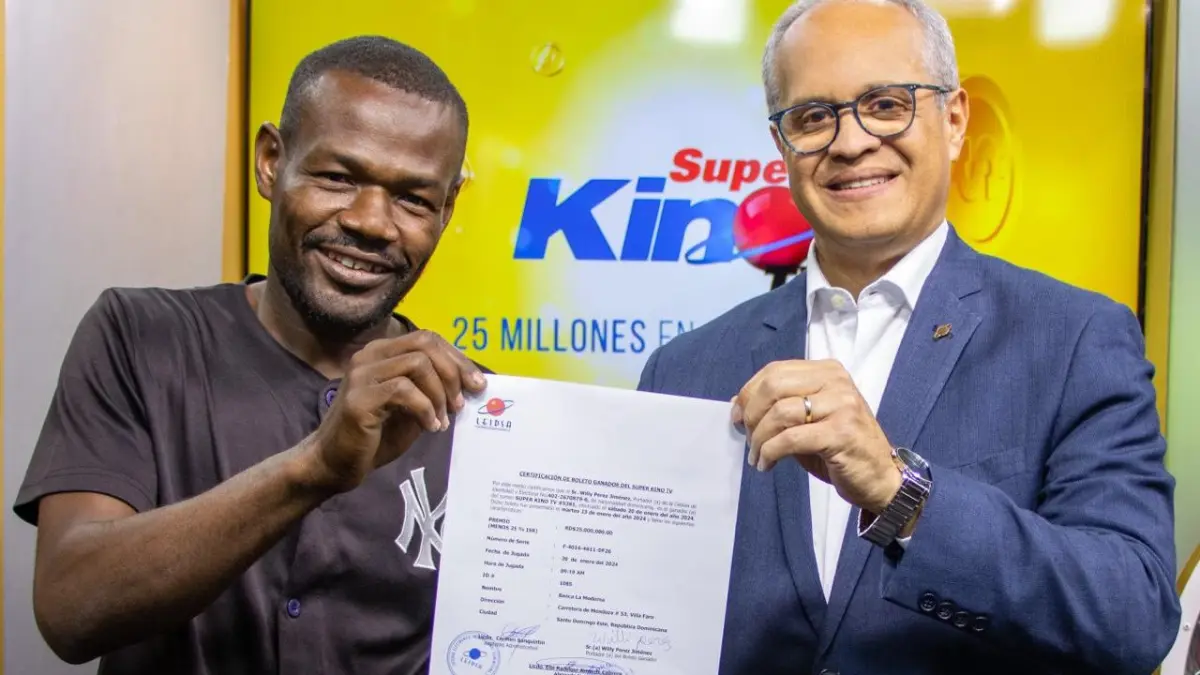 Santo Domingo.– SANTO DOMINGO.- La Lotería Electrónica Internacional Dominicana (Leidsa) informó que el Sr. Willy Pérez Jiménez, recibió el certificado que lo acredita como el ganador de 25 millones de pesos con el Súper Kino Tv, del sorteo correspondiente al pasado sábado 20 de enero.