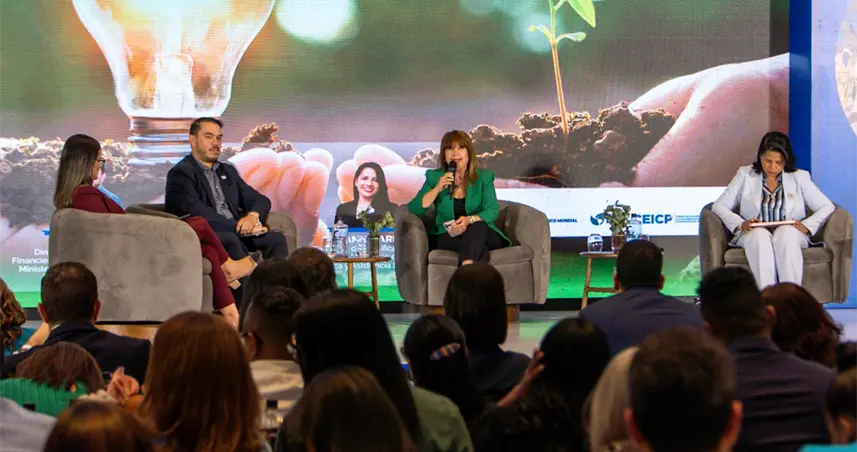 El panel "Compras verdes: conectando políticas públicas con el desarrollo sostenible" fue moderado por María del Pilar Peña, encargada de compras inclusivas y sostenibles de la DGCP, y tuvo como panelistas, además de Kathia Mejía, a los especialistas Iván Cruz y Rosanna Arias.