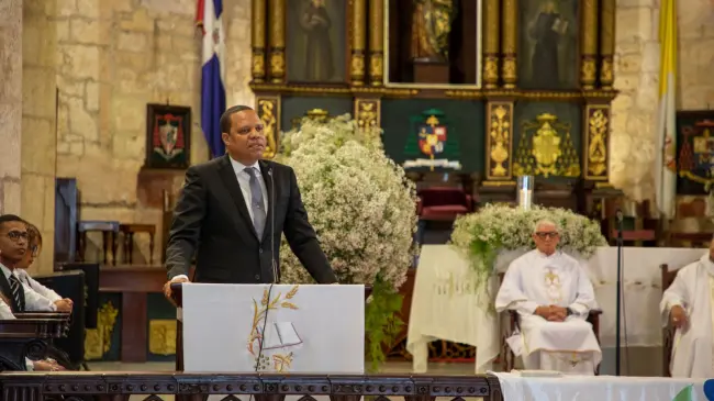 En la misa, oficiada por monseñor Ramón Benito Ángeles Fernández, Alcántara también habló de los logros alcanzados por esa entidad en beneficio de los consumidores.