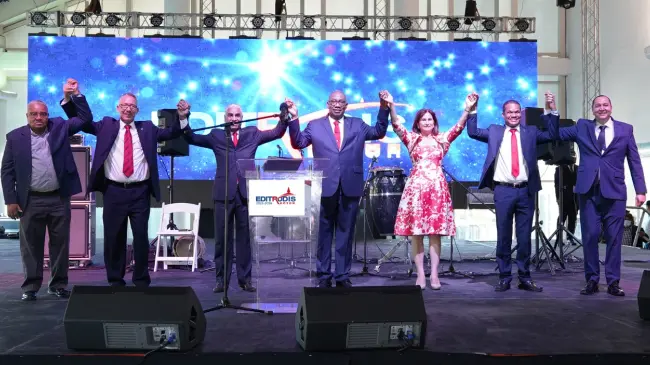 SANTO DOMINGO ESTE.- El candidato a la Rectoría de la Universidad Autónoma de Santo Domingo (UASD), Editrudis Beltrán, celebró la fiesta navideña del "triunfo", realizada a casa llena en la terminal de San Souci de esta ciudad.