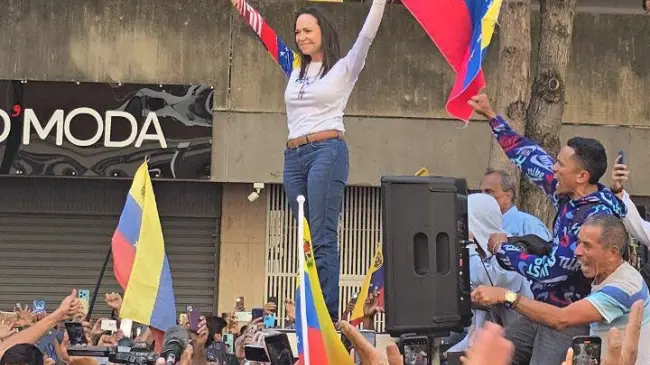 Machado, acompañada por cientos de seguidores, reafirmó su respaldo a González Urrutia y denunció el fraude electoral que, según la oposición, permitió al oficialismo adjudicarse la victoria. “El 85 % de las actas electorales certifica el triunfo de la oposición. La lucha por la verdad y la democracia no puede detenerse”, expresó en su intervención.
