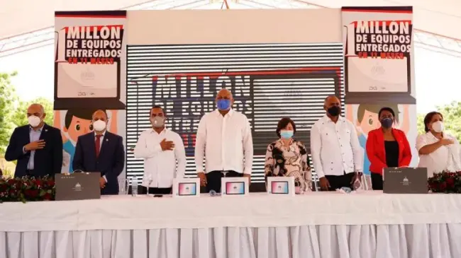 Baní, Peravia.- El ministerio de Educación alcanzó la cifra de un millón de dispositivos tecnológicos entregados a los alumnos del sistema de educación preuniversitaria.