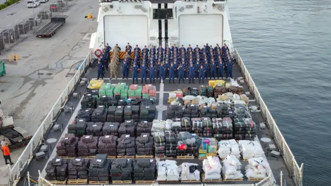 "La Guardia Costera de Estados Unidos logró un hito histórico con la descarga de 76.140 libras (34.536 kilogramos) de narcóticos ilícitos, valorados en 473 millones de dólares, lo que marca la mayor cantidad de drogas descargadas en la historia de la Guardia Costera", informaron los guardacostas en un comunicado.