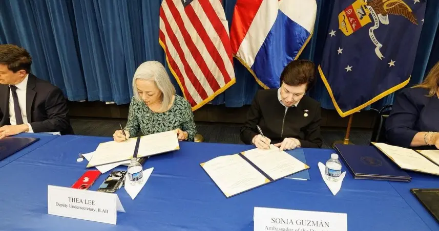 El pacto fue firmado por la embajadora, Sonia Guzmán y la subsecretaría de Trabajo de EEUU, Thea Lee.