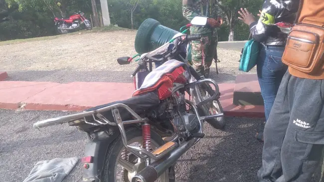 Los nacionales haitianos en condición migratoria irregular, un hombre y una mujer, transitaban a bordo de una motocicleta marca Haojin, color rojo, por un camino que conduce desde la línea fronteriza hasta la comunidad de Pinzón del Municipio Comendador, provincia Elías Piña.
