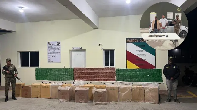 REDACCIÓN -.– REDACCIÓN. - En un operativo estratégico llevado a cabo por miembros de la Dirección de Inteligencia G-2 y uniformados del Ejército de la República Dominicana (ERD) en la provincia Elías Piña, se logró la incautación de una escopeta automática de alto calibre y 160,000 unidades de cigarrillos de contrabando.