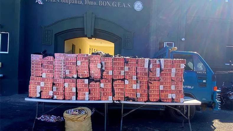 Ejército ocupa 280 mil cigarrillos ilícitos ocultos bajo carga de paja en un camión en Montecristi