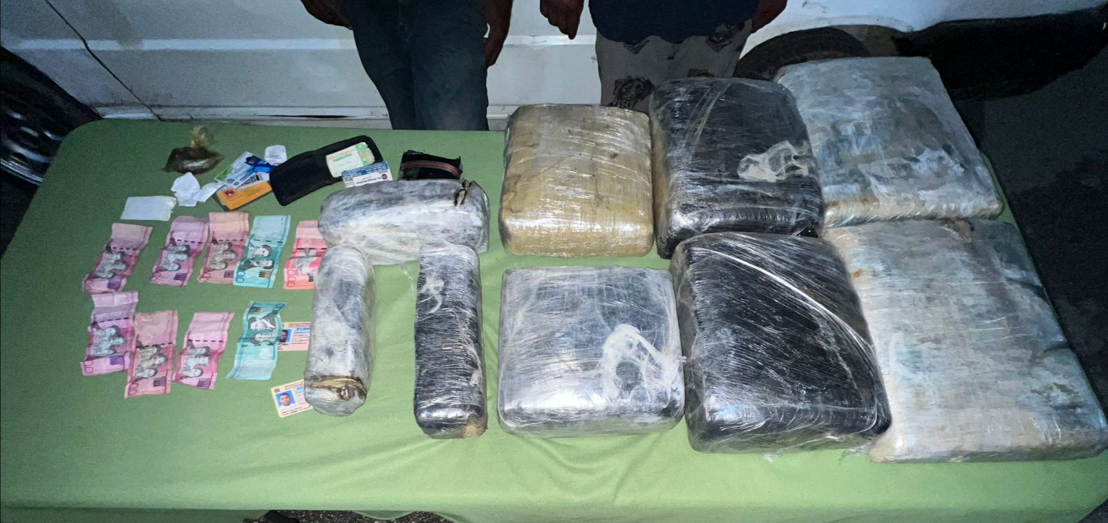 Escondidos en el tanque de combustible de una furgoneta marca Fiat Florino, fueron encontradas 09 pacas de un vegetal presumiblemente marihuana envueltas en fundas color marrón y negra y cinta adhesiva transparente, con un peso de 64 libras.