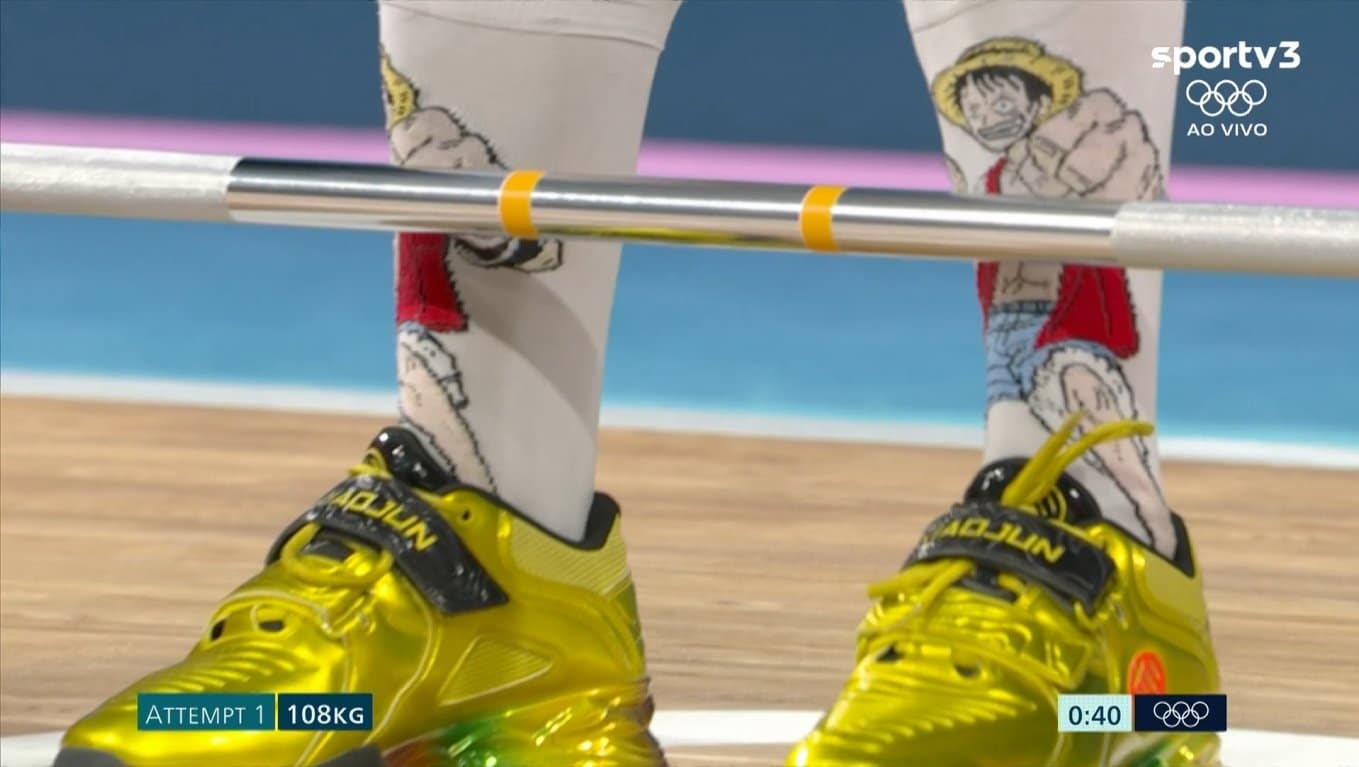El Rey de los Piratas apareció en París 2024 no solo través de sus míticas poses, sino también como parte del vestuario de la atleta colombiana Mari Sánchez, de halterofilia, quien al momento de participar en las olimpiadas usó unos calcetines largos con la figura de Luffy en la parte delantera.