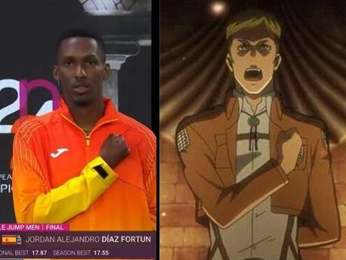 El atleta español en triple salto, Jordan Díaz que mordió el oro en París 2024, con una marca de 17.86 en su primer intento, dejó claro que es un gran fan de "Shingeki no Kyojin". Durante su primera presentación, se llevó el puño derecho al corazón con su mano izquierda tras la espalda, simulando la postura de un miembro de la Legión de Reconocimiento.
