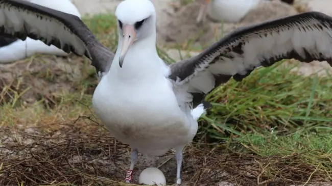 Wisdom, que es un albatros de Laysan con alas largas, regresó al Refugio Nacional de Vida Silvestre del Atolón de Midway, en el extremo noroccidental de Hawái, y puso lo que los expertos estiman que puede ser el sexagésimo huevo de su vida y el primero en más de cuatro años.