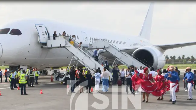 En un acto encabezado por el presidente Abinader, la aerolínea española, Air Europa, realizó el primer vuelo desde Madrid, España vía el Aeropuerto Internacional de Santiago.