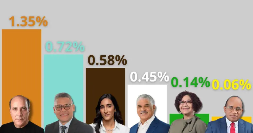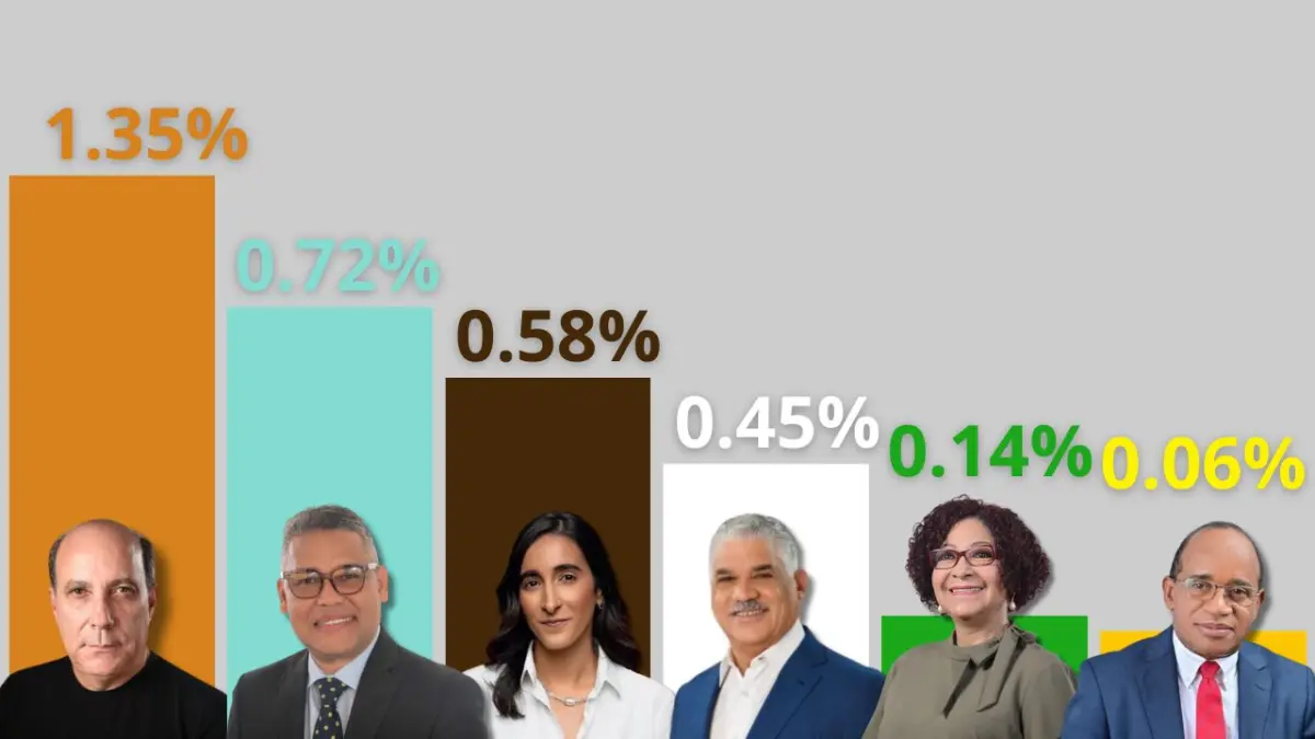 "El cobrador", obtuvo 58,258 votos lo que equivale al 1.35%; Carlos Peña alcanzó un total de 31,257 votos con un 0.72%, Virginia Antares unos 24,962 lo que representa un 0.58% y Miguel Vargas, a poco tiempo de que culmine el conteo figura con 19,431 votos a favor, es decir, el 0.45%.