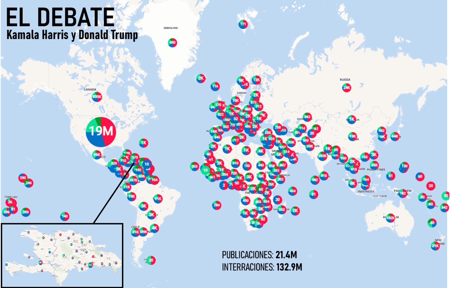 República Dominicana: Con 16K menciones, este país también muestra un interés significativo en el debate, probablemente debido a la gran población dominicana en Estados Unidos y alto interés político y su fuerte implicación en la política estadounidense.