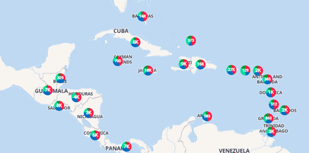 El impacto considerable en Centroamérica y el Caribe, con una participación particularmente fuerte en Jamaica, Haití, República Dominicana, y Puerto Rico. Donald Trump dominó en términos de menciones e interacciones, aunque Kamala Harris también captó una atención significativa. Este análisis refleja cómo las dinámicas políticas en Estados Unidos influyen en las discusiones en Centroamérica y el Caribe, destacando la interconexión entre las políticas de EE.UU. y las preocupaciones regionales en estos países