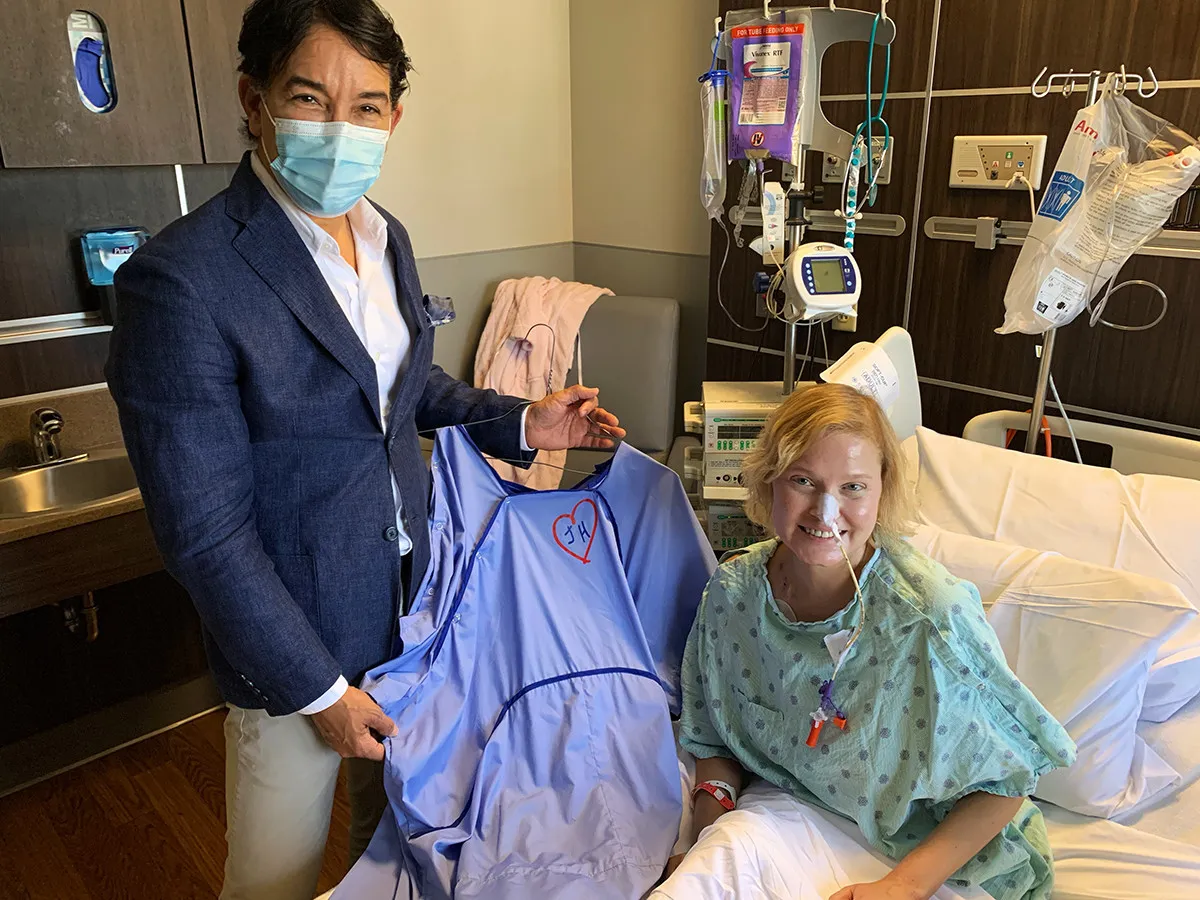Los dos discutieron una colaboración que le permitiría a Ruiz usar su visión de la moda para crear batas de un tipo diferente: batas de hospital hechas a medida para pacientes trasplantados que se recuperan de cirugías complejas.