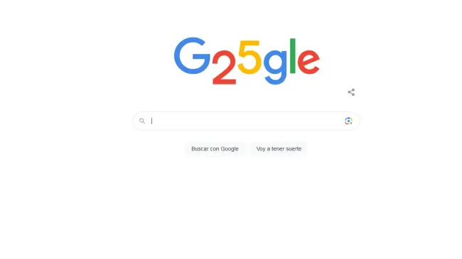 Así, hoy la palabra "Google" se ha transformado en "G25gle" en la página principal de este motor de búsqueda y el confeti inunda las pantallas al clicar sobre el logotipo de la empresa.