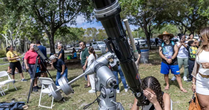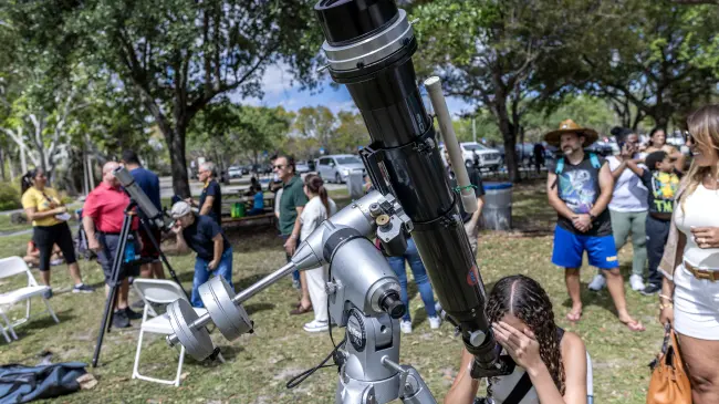 "Hemos repartido 3.000 gafas aquí", dijo un trabajador, Kendry Vega, encargado de explicar la ciencia detrás del eclipse a los visitantes, y que subrayaba la importancia de usar esas gafas, con filtros cien veces más oscuros que los de unas gafas de sol normales, para proteger la vista.