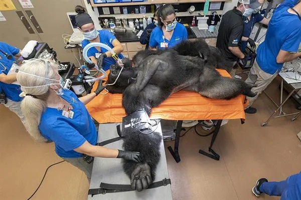 El examen médico al gorila "Barney" se convierte en sensación en internet