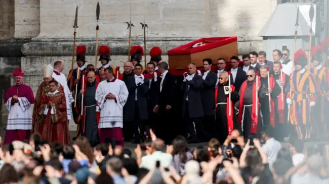 La ceremonia de traslado del féretro del papa Francisco comenzó en su residencia final, la capilla de Santa Marta, y recorrió varias plazas hasta llegar a la basílica de San Pedro.