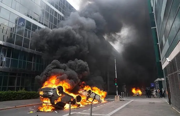 Al menos 150 personas fueron arrestadas en la segunda jornada de altercados, que se tradujeron también en ataques a 90 edificios públicos (como ayuntamientos, escuelas, comisarías o tribunales), muchos de ellos incendiados, como decenas de coches.
