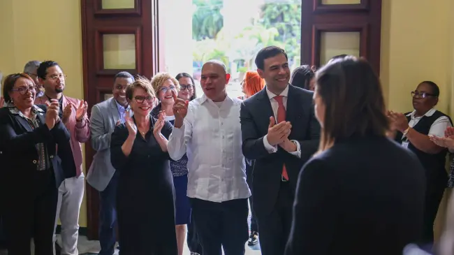 La visita inició en el Palacio de Bellas Artes, donde fue recibido con una cálida bienvenida por la directora general Marinella Sallent, acompañada de un nutrido grupo de empleados y artistas que expresaron su entusiasmo por colaborar en la consolidación del sector cultural del país.