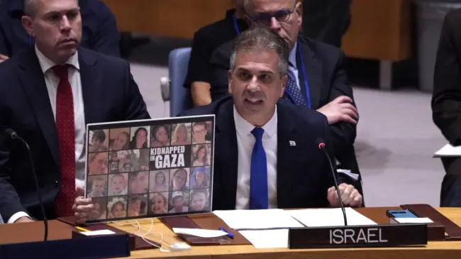 El embajador Erdan, que compareció junto al ministro y varios familiares de los rehenes capturados por Hamás, añadió: "Obviamente, vamos a tener que reconsiderar toda nuestra relación con Naciones Unidas".