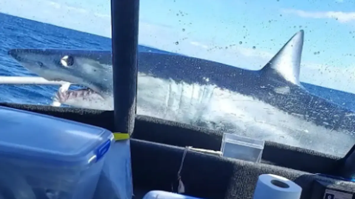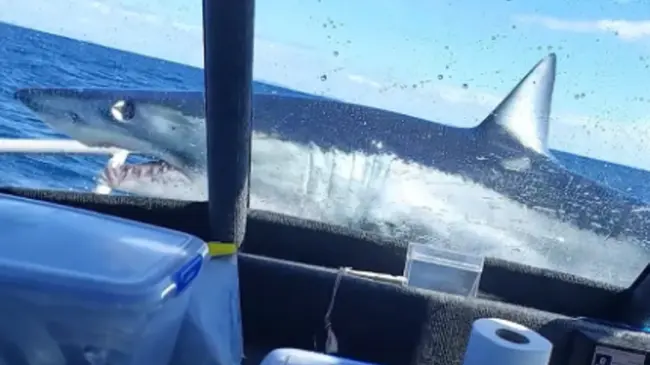 Redacción.- El hecho ocurrió el 5 de noviembre en un bote de Churchys Charter NZ que había salido al mar supervisado por Ryan Churches junto a cinco pasajeros en la costa de Whitianga, Nueva Zelanda. Después de que el tiburón quedara enganchado en un sedal, el escualo salió volando del agua y se estrelló contra la cubierta.