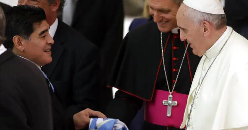 Francisco se reunió dos veces con su compatriota argentino Maradona como papa. Hubo una audiencia especial en relación con un partido de fútbol benéfico en 2014 cuando Maradona le presentó al pontífice una camiseta de fútbol, con el nombre "Francisco" y el número diez de Maradona.