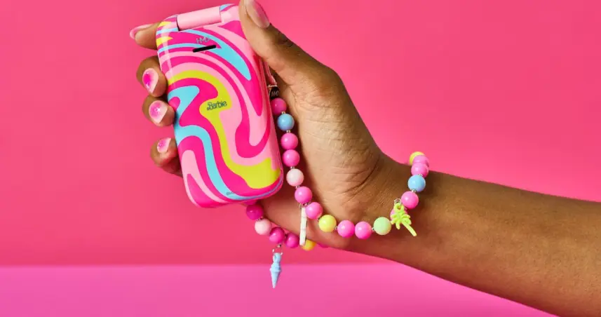 Siempre con el rosa por bandera, en colaboración con la compañía finesa HMD, fabricantes de los móviles Nokia, Mattel presentó este nuevo teléfono con tapa y botones que se aleja del 'smartphone' para dirigirse hacia un estilo retro.