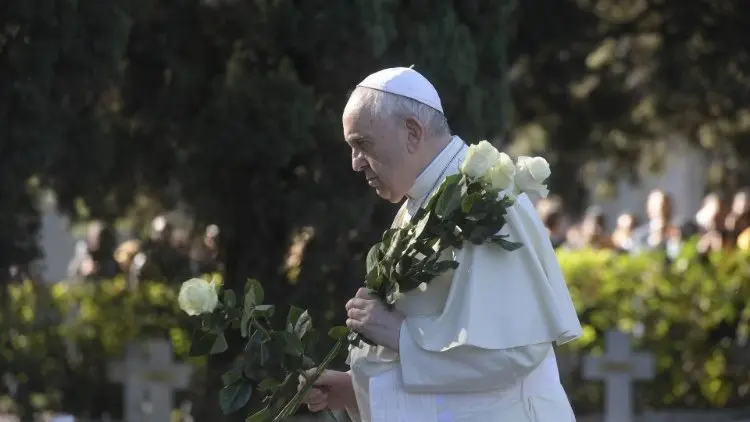 El papa en el cementerio de la Guerra en Roma: "Las guerras son siempre una derrota"